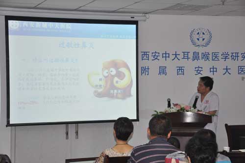 活动中,西安中大耳鼻喉医院医生就目前儿童高发性疾病——鼻炎、过敏性鼻炎、鼻窦炎等做了详细的介绍,表示大部分的儿童患上鼻病后都会产生鼻塞,鼻塞引起的呼吸不畅,睡眠深度不够、大脑缺氧、觉醒后易疲劳等,对于青少年大脑发育,包括认知能力、记忆力和心理活动都有影响;而且青少年正处在发育期,如果鼻塞,会造成睡眠时张口呼吸,长期张口呼吸会使上下颌咬合关系发生变化,上下颌发育不良直接影响面容,造成患儿鼻孔外翻、鼻梁塌陷、鼻腔萎缩、蛙鼻等。
