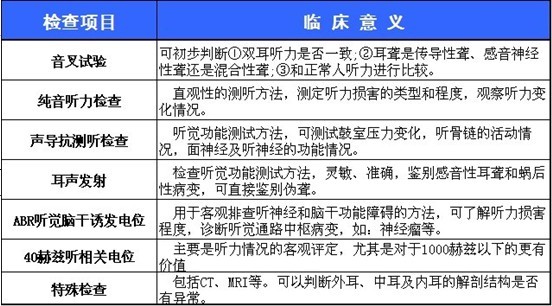 (三)耳聋应做的其他相关检查:血常规、尿常规、血液生化检查、心电图、B超、高氯酸释放试验等。