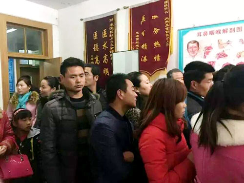 延安洛川县凤栖镇卫生院会诊现场,人群汹涌如潮,会诊室,甚至走廊外早已水泄不通。张全安教授在众多患者的围拥之下,依然表现得耐心细致,冷静严谨,丝毫没被周围环境所影响,而是以眼前患者为重。