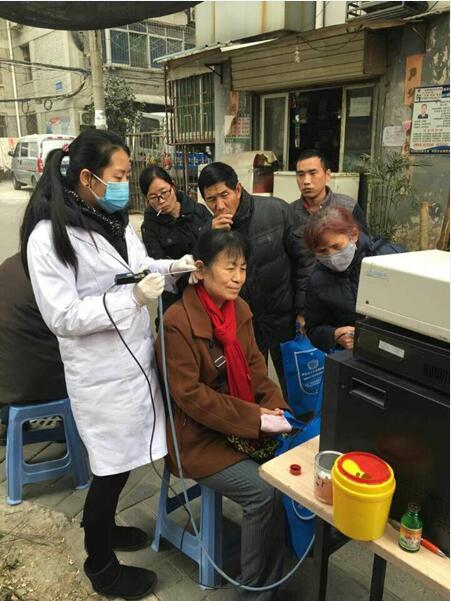 冬季是鼻炎、过敏性鼻炎、耳鸣耳聋等耳鼻喉疾病的多发季节。为了提高市民们对耳鼻喉疾病的认识和防范意识,西安中大耳鼻喉医院于1月4日在西安环北路社区的吊桥小区,开始了2016年的场义诊活动,为吊桥小区的市民们讲解耳鼻喉基础知识,以及耳鼻喉内窥镜检查和血压测量,给市民们带去冬日里的温暖。