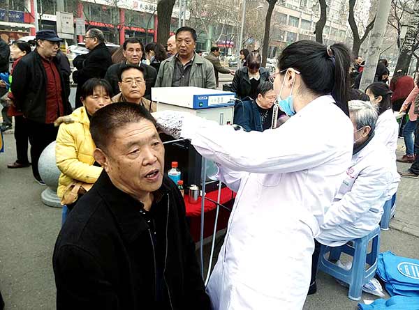 早春三月,乍暖还寒。尽管春寒料峭,天气阴沉,医护志愿者们学雷锋的热情丝毫未减,医护们一边为就诊群众进行体格检查、量血压、测血糖、进行内窥镜深入检查、健康知识宣传单发放等等,一边耐心地解答各种问题,针对每一位就诊群众的检查情况,分别给予他们合理保养、用药的建议,和生活中其他应注意的事项。志愿者们真诚、热情的服务态度,赢得了现场群众的大力称赞。